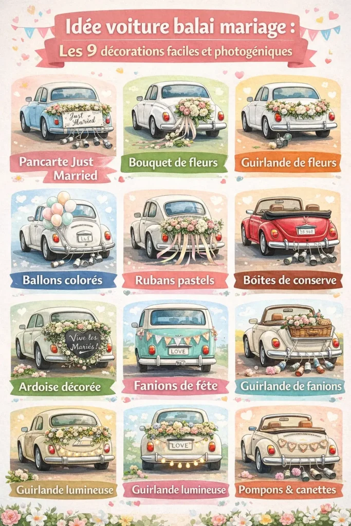 Idée voiture balai mariage : les 9 décorations faciles et photogéniques